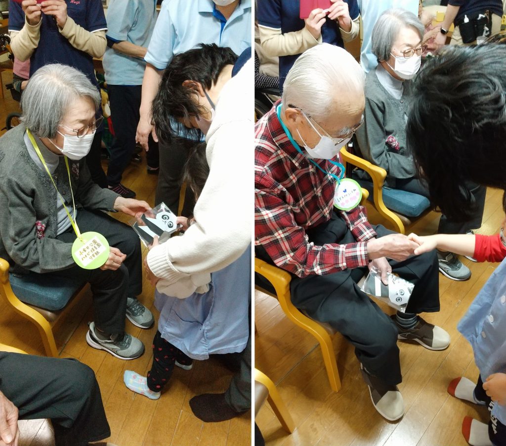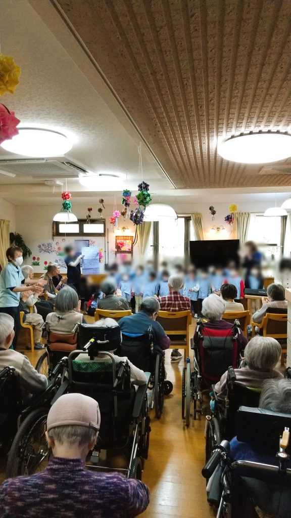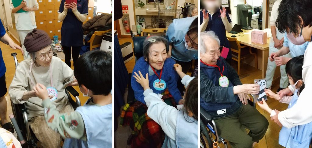 園児たちから、素敵な歌と手作りペンダントのプレゼントを頂き、入居者の皆さんも楽しいひと時を過ごされました😉