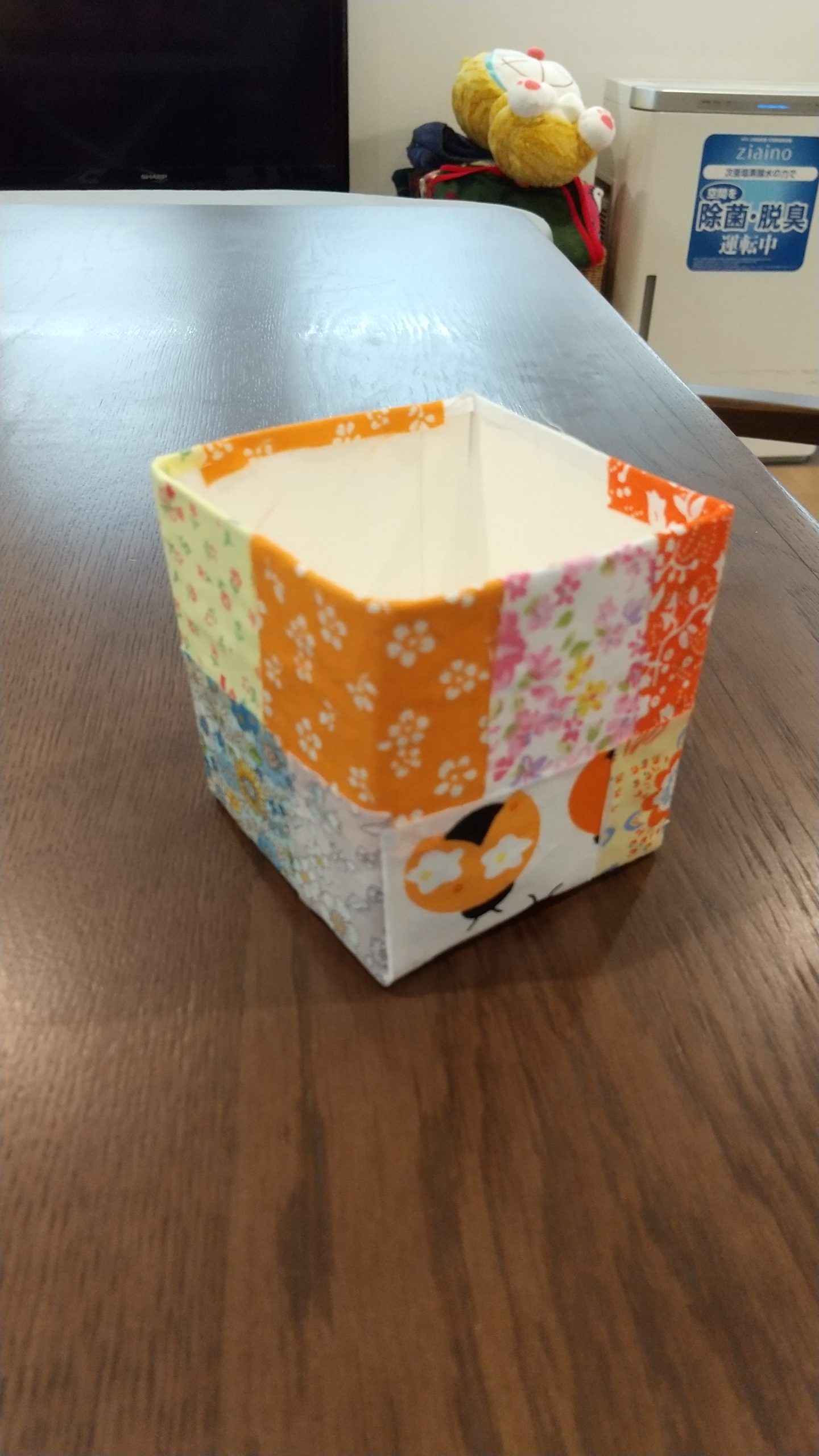 牛乳パックに折り紙を貼り貼りしました🥳