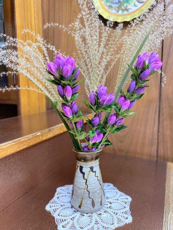 館内にはリンドウとススキが飾られ、空間もすっかり神無月の装いに。