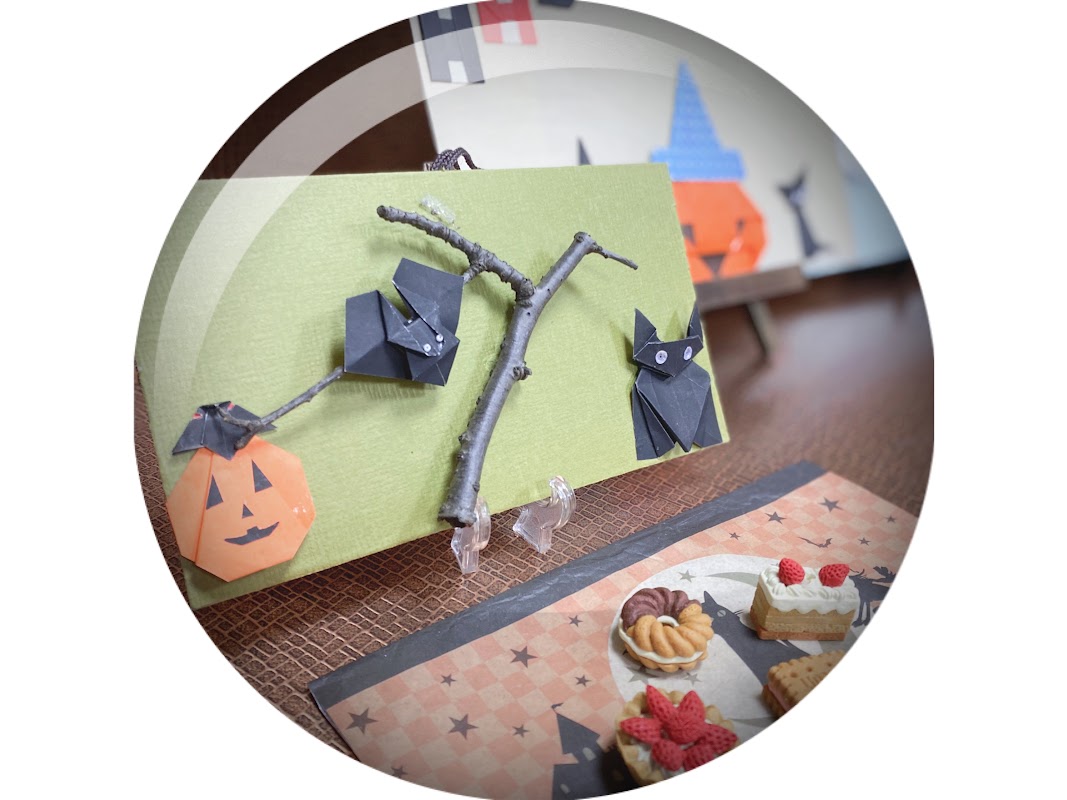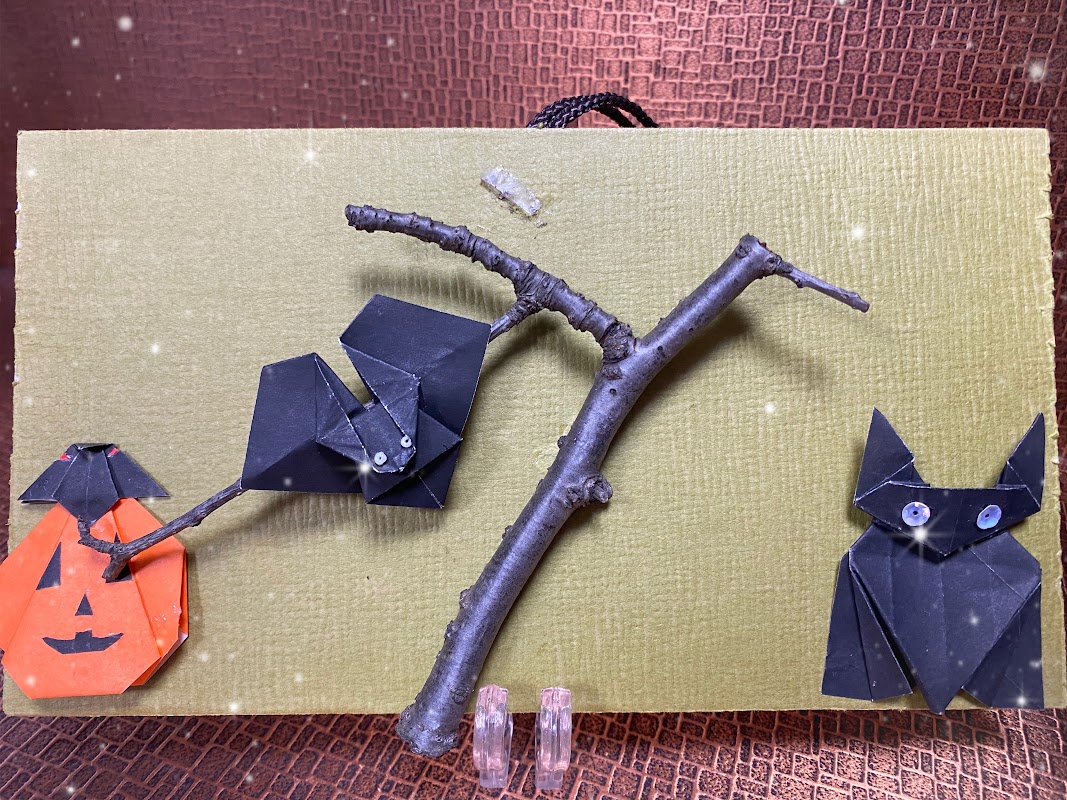 折り紙でできたオバケやカボチャ達がにぎやかに登場🎃🧡