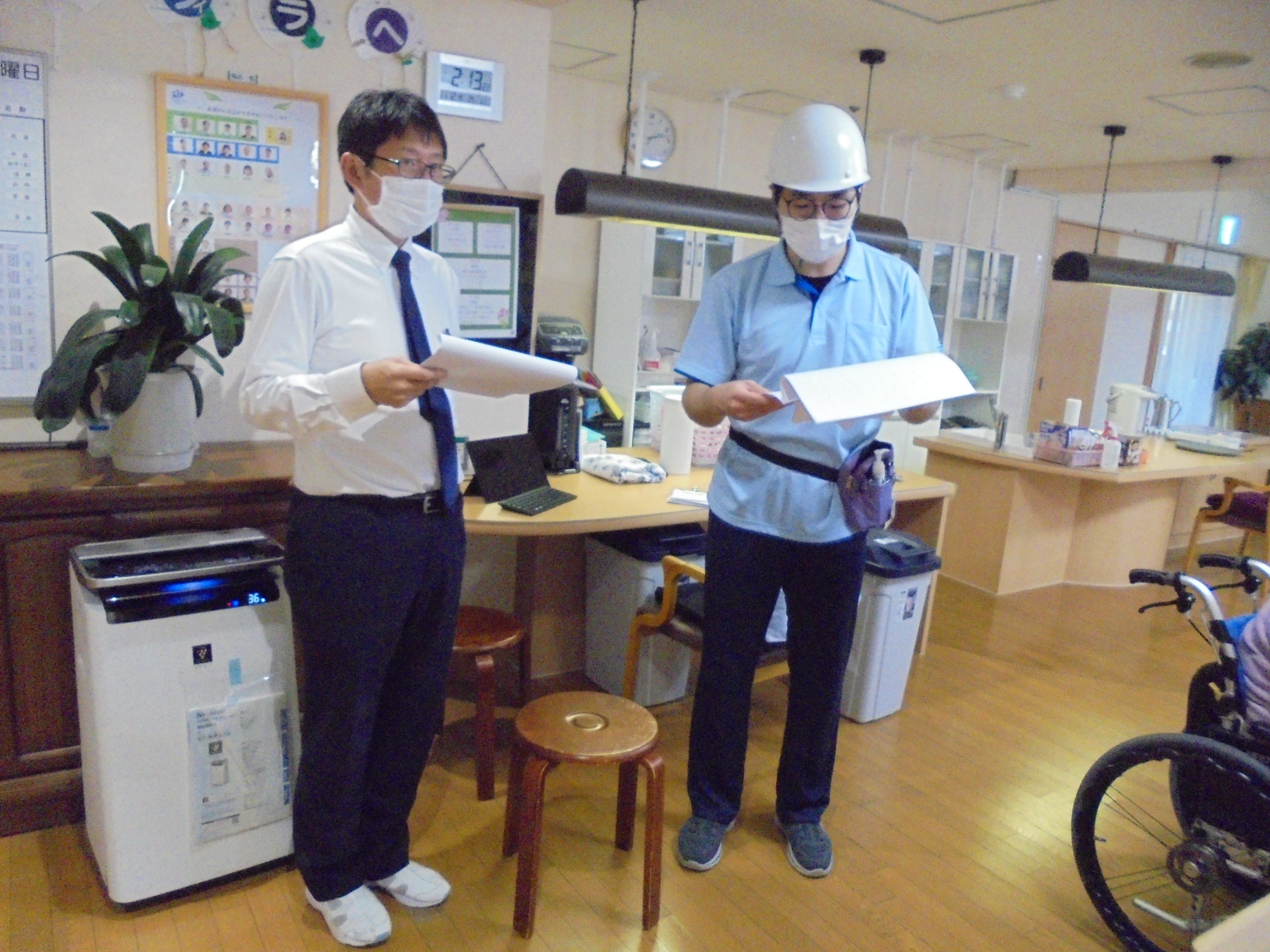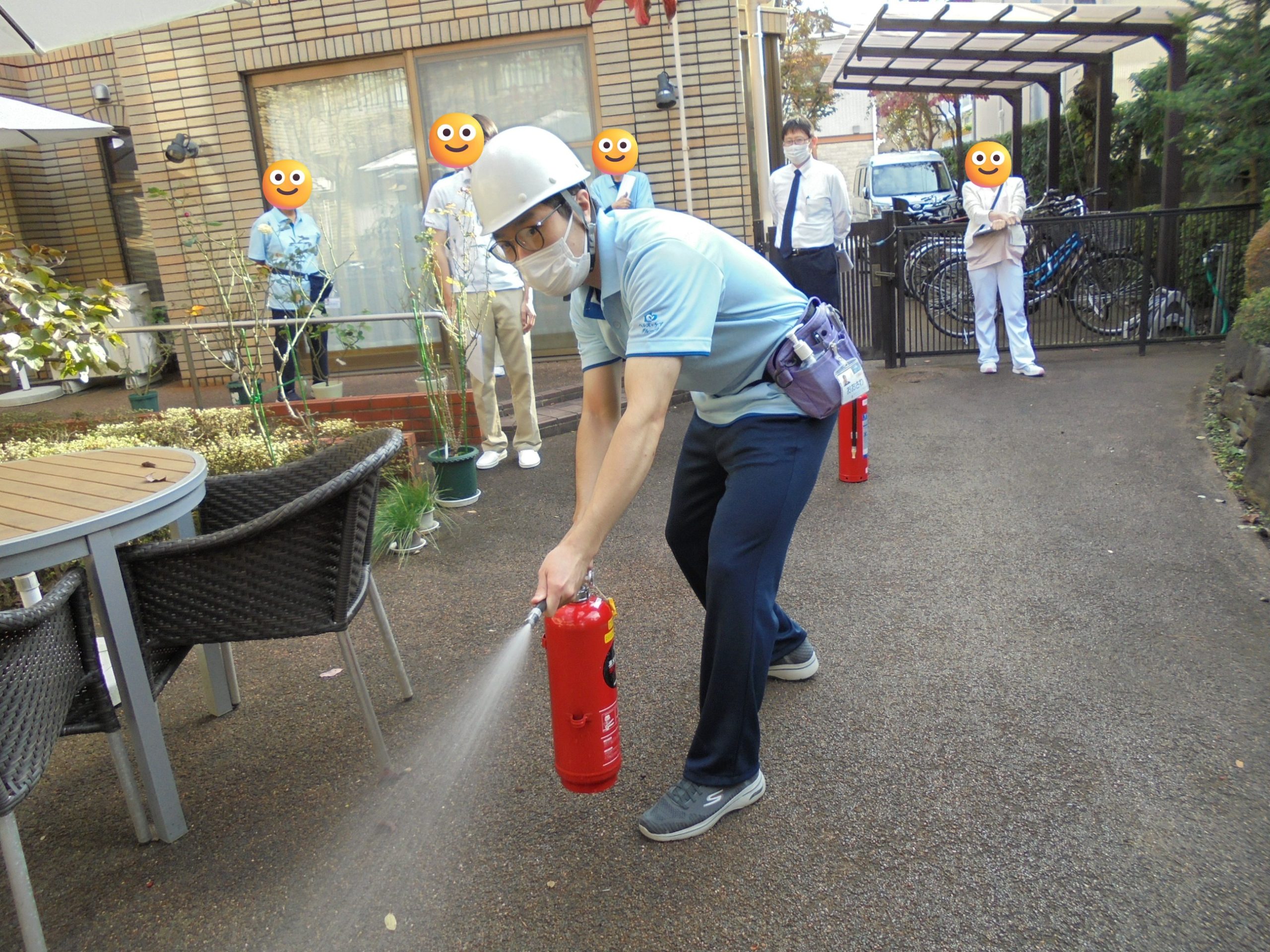 防火管理者を務める職員の指導のもと、年に2回消防訓練を行っています🚒