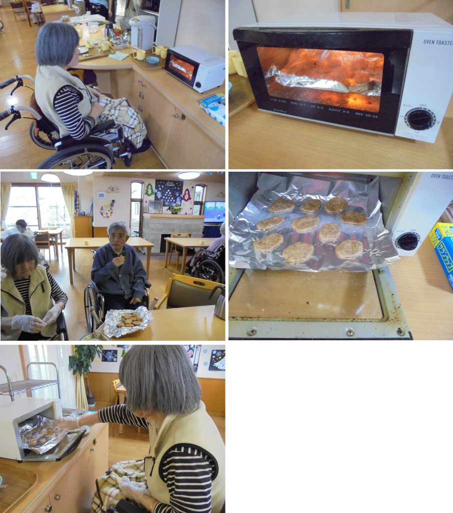 材料の捏ねからトースターに乗せるまで、全てご入居者様にお願いしましたが、手際よく行って下さいました👍✨