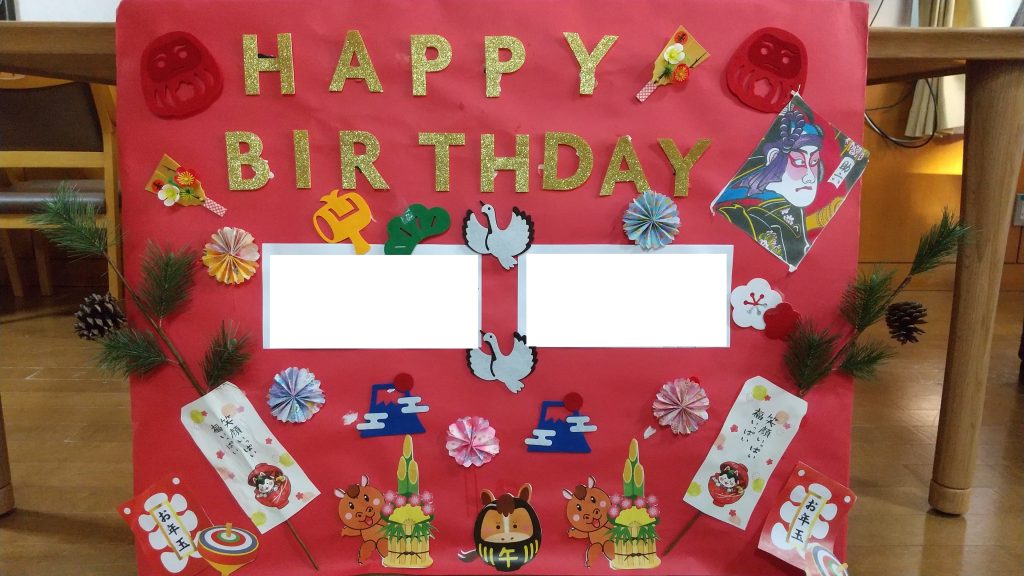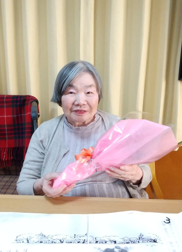 今月誕生日を迎えられ、誕生日会に参加される入居者様に受けて頂きました😄
