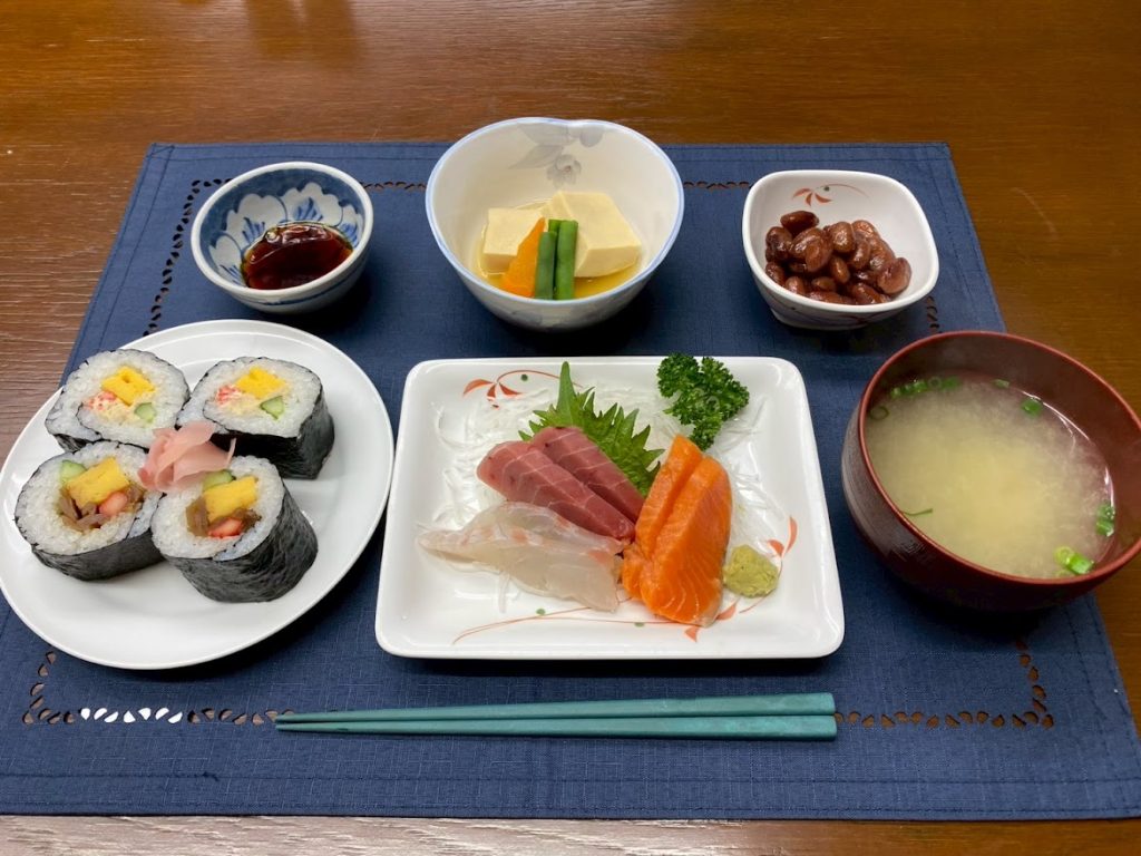 夕食には、節分の行事にちなみ、おいしい海苔巻きを召し上がっていただきました🍣